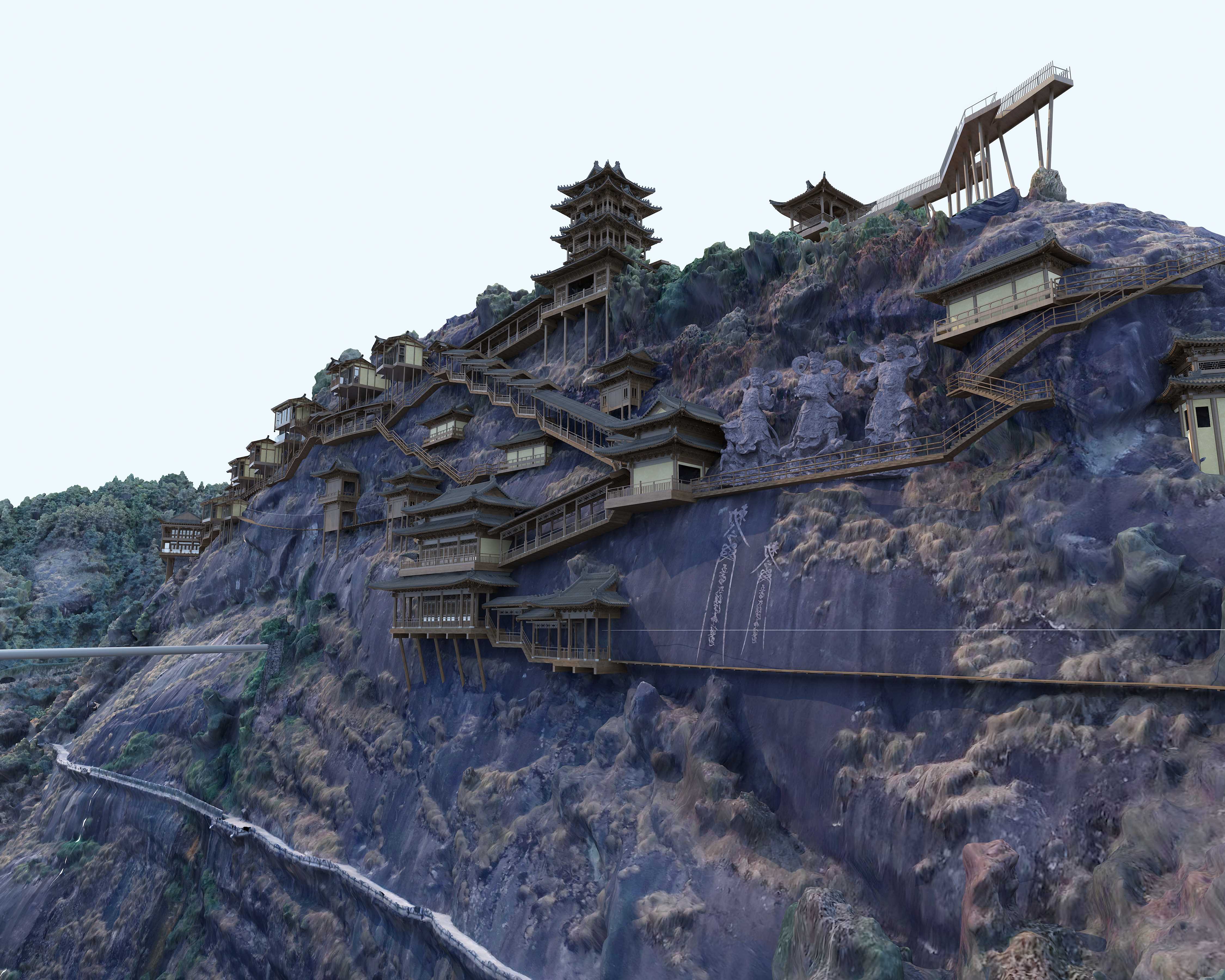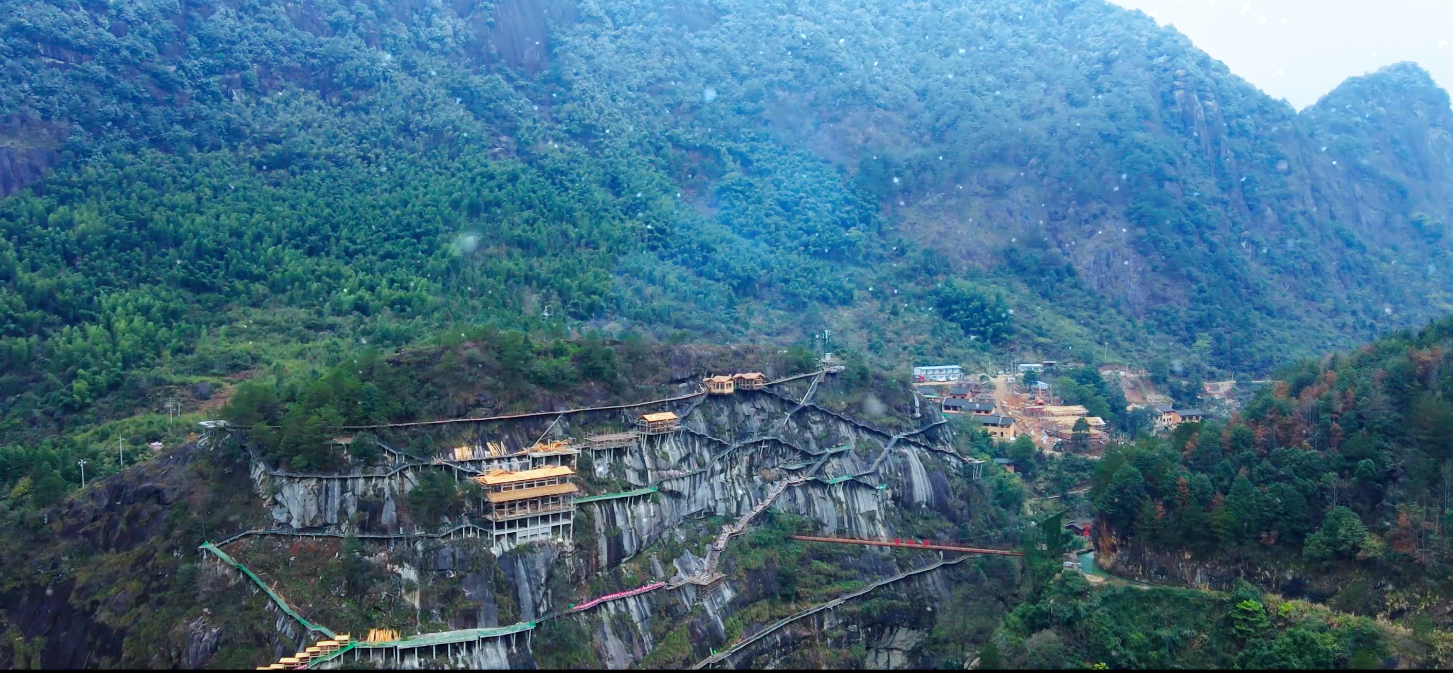 传说上古大洪水,白鹤衔来野果解救被围困于崖上的村民而得名“白鹤崖”。东汉胡昭在此羽化成仙后,历代又有众多道家方士慕名而来,在崖上结庐修行。 白鹤崖垂直高度有110多米,为复原旧时盛况,今天的白鹤崖上建有12间悬空玻璃客房、悬崖图书馆、悬崖餐厅和高空观景台,可俯瞰整座山谷,远眺灵山龙脊。 白鹤崖村,悬崖峭壁遗世独立、返璞归真的鸟巢,看似“天空之城”,与山野为邻,与星月相伴,尽享闲云野鹤、回归自然的生活。
