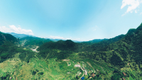 祥云舞风,鸟戏长空,到处涓涓细流,幽泉飞瀑,奇峰异石;山中竹林葱郁,林下野菊盛开,如淡墨山水画般雅趣盎然。由于地质构造运动,断块突起,山体急剧上升,使岩石产生重力失稳,沿陡倾的断裂节理面产生崩落垮塌,历尽沧桑,形成了许多今日之劈地摩天,深沟幽谷的峡谷绝景奇观。